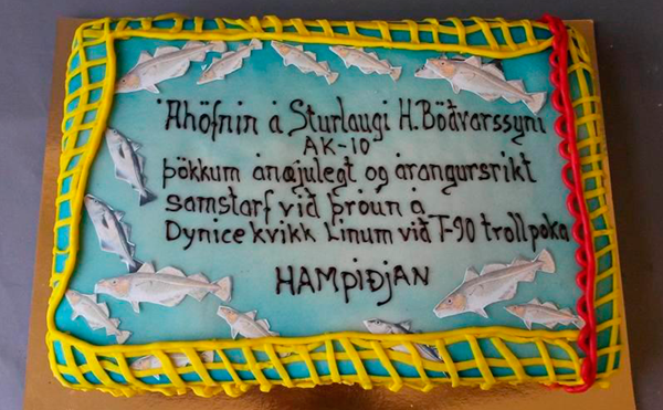 ‘It was exactly two years ago on the 14th of October that Sturlaugur H. Bödvarsson sailed for its first trip using a T90 codend in 155mm mesh to fish for cod on Westfjords grounds. The results have exceeded our most optimistic expectations so we felt it was worth marking the occasion. We decided on a buffet of cream cakes for the crew as a way of thanking them for the outstanding co-operation Hampidjan has enjoyed with skipper Eiríkur Jónsson and his crew over the last two years,” Gudmundur Gunnarsson said.